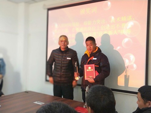 總經(jīng)理助理、辦公室主任王德華宣讀了頒獎(jiǎng)詞,公司領(lǐng)導(dǎo)向獲得表彰的人員頒獎(jiǎng)。徐總頒發(fā)了“先進(jìn)個(gè)人、先進(jìn)集體”獎(jiǎng);魏總頒發(fā)了“優(yōu)秀員工、技術(shù)創(chuàng)新之星”獎(jiǎng);胡總頒發(fā)了“技術(shù)能手、服務(wù)之星”獎(jiǎng);劉總頒發(fā)了“優(yōu)秀新人”頒獎(jiǎng)。