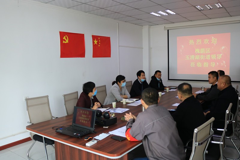 5月9日上午,槐蔭區(qū)玉清湖街道黨工委書(shū)記逯明一行蒞臨公司,考察指導(dǎo)公司常態(tài)化疫情防控和復(fù)工復(fù)產(chǎn)工作,并召開(kāi)座談會(huì),深入了解企業(yè)發(fā)展過(guò)程中遇到的困難,直面問(wèn)題、現(xiàn)場(chǎng)辦公。玉清湖街道應(yīng)急管理辦公室副主任陳國(guó)瑞、黨建工作辦公室副主任李偉偉、區(qū)自然資源局玉清湖國(guó)土所所長(zhǎng)張超陪同。公司董事長(zhǎng)徐福厚、副董事長(zhǎng)魏士山、總經(jīng)理徐鵬、黨支部書(shū)記兼生產(chǎn)副總孔祥健、董事會(huì)秘書(shū)兼辦公室主任王德華熱情接待了逯明書(shū)記一行。![]()