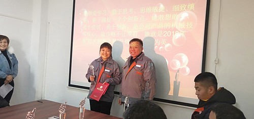 總經(jīng)理助理、辦公室主任王德華宣讀了頒獎(jiǎng)詞,公司領(lǐng)導(dǎo)向獲得表彰的人員頒獎(jiǎng)。徐總頒發(fā)了“先進(jìn)個(gè)人、先進(jìn)集體”獎(jiǎng);魏總頒發(fā)了“優(yōu)秀員工、技術(shù)創(chuàng)新之星”獎(jiǎng);胡總頒發(fā)了“技術(shù)能手、服務(wù)之星”獎(jiǎng);劉總頒發(fā)了“優(yōu)秀新人”頒獎(jiǎng)。