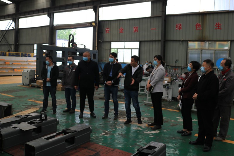 逯明書(shū)記一行首先來(lái)到了生產(chǎn)車(chē)間,現(xiàn)場(chǎng)考察企業(yè)在常態(tài)化疫情防控下的復(fù)工復(fù)產(chǎn)情況和面臨的困難。在裝配調(diào)試區(qū),逯書(shū)記詳細(xì)了解了一拖二全自動(dòng)口罩機(jī)、高速數(shù)控角鋼鉆孔生產(chǎn)線、新型高速數(shù)控角鋼沖孔打字剪切生產(chǎn)線等設(shè)備的裝配調(diào)試情況和生產(chǎn)過(guò)程中遇到的困難。