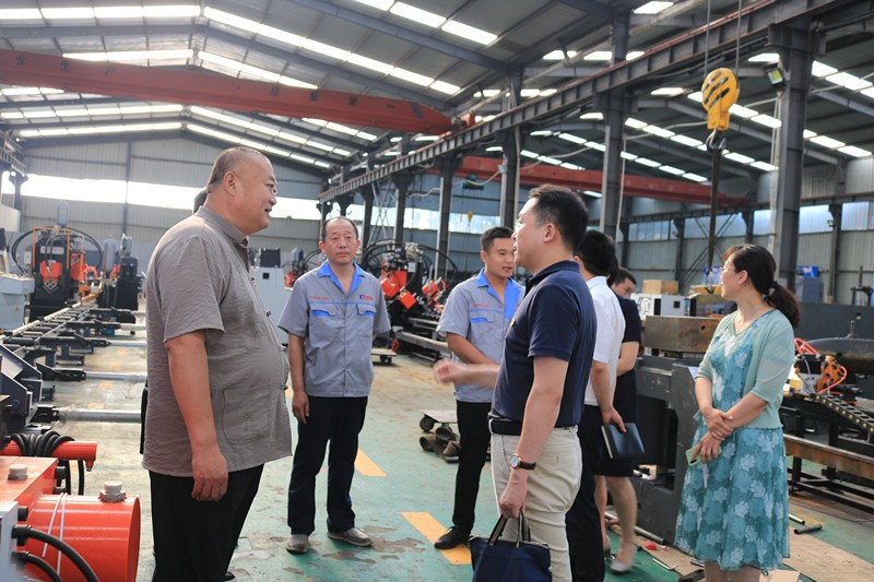 7月7日下午,濟(jì)南市人社局社?;鸨O(jiān)管處處長(zhǎng)董文、濟(jì)南市委機(jī)要保密局法規(guī)宣傳處副處長(zhǎng)張克亞等市疫情處置工作黨建保障巡回督導(dǎo)工作組領(lǐng)導(dǎo)一行,蒞臨我公司調(diào)研指導(dǎo)常態(tài)化疫情防控工作和企業(yè)復(fù)工復(fù)產(chǎn)工作,濟(jì)南市槐蔭區(qū)玉清湖街道黨工委副書(shū)記、人大工作室主任牛國(guó)蕾,黨建工作辦公室副主任李偉偉陪同。公司董事長(zhǎng)徐福厚、總經(jīng)理徐鵬、黨支部書(shū)記兼生產(chǎn)副總孔祥健、董事會(huì)秘書(shū)兼辦公室主任王德華熱情接待了董文處長(zhǎng)一行。